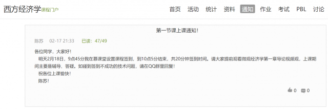 在课程门户和学习通上发布相关的通知。第一,在课程门户发布公告,告知学生本门课程的开课时间、线上教学方式、线上教学平台和辅导平台、线上学习工具、线上成绩比重等重要信息。第二,发布“在线学习临时建群”通知,公布已经建好的QQ群二维码,让学生入群,以更方便与学生取得联系。第三,发布“第1次”上课通知,告知学生第一次上课的时间、上课前要做的准备工作以及强调线上教学的纪律问题。第四,发布“第1次上课的签到通知”,告诉学生在哪个平台签到,什么时间签到。