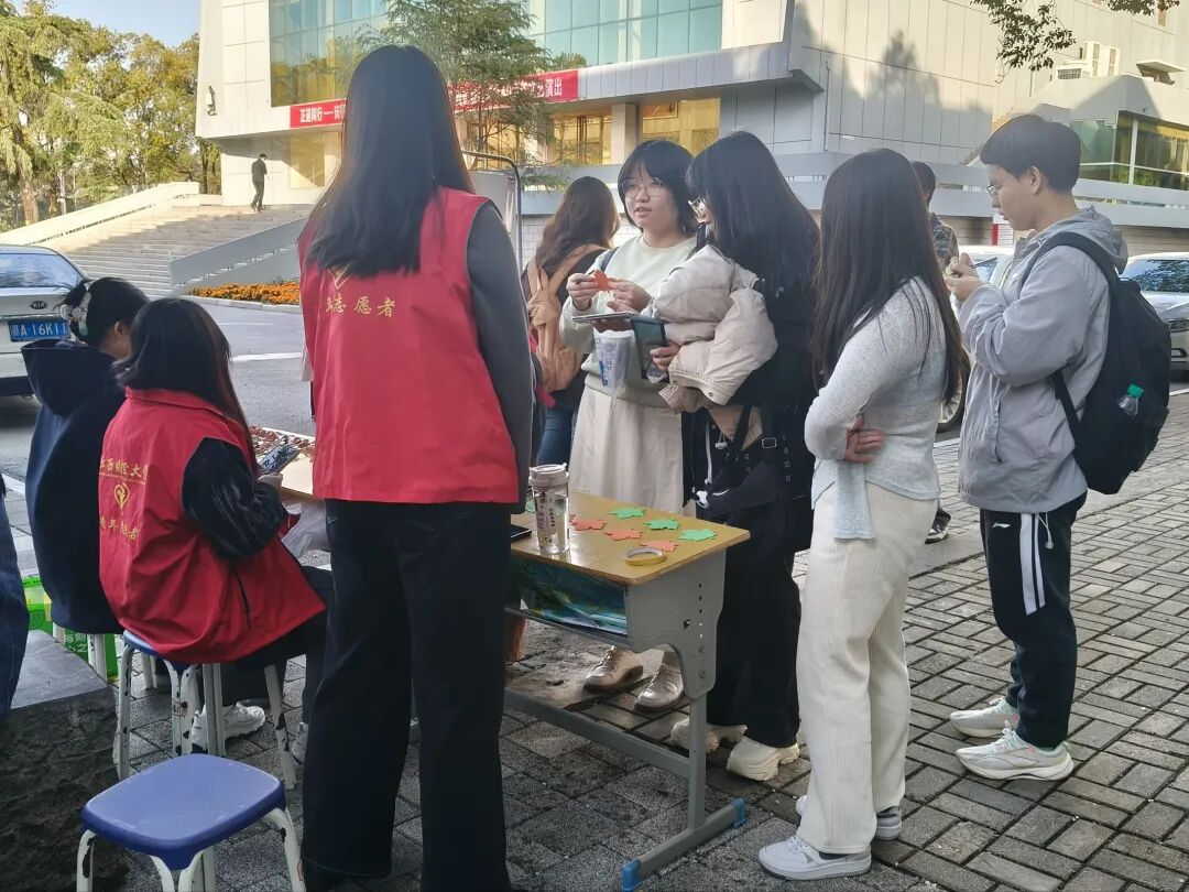 麻豆视频 青年志愿者协会在蛟桥园校区大礼堂前进行摆点,并获得同学们的热烈反响。虽在冬日,但情感没有褪色。同学们在摆点处领取“枫叶”形卡片,写下冬日祝福话语,将写好的“枫叶”悬挂或者粘贴于现场的“暖冬树”上,共同完成暖冬树的创作。或选择真心话大冒险挑战完成一项祝福行动,在寒冷的冬日带来了夏日的温度。
