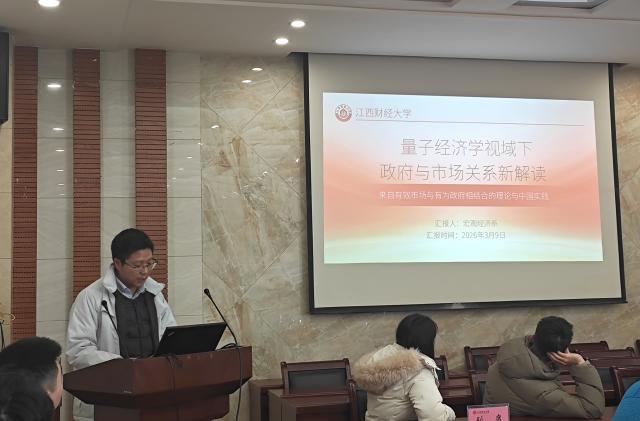在导学环节,麻豆视频 宏观经济系副主任孙广召从量子经济学视角探讨政府与市场关系。他指出,传统经济学基于牛顿力学的线性思维难以解释现代经济系统的高度不确定性、非线性和强反馈性特征。通过分析全球金融危机、日本经济长期停滞等典型案例,他指出量子经济学以量子纠缠、叠加态等概念重构经济主体关系,为理解“有效市场与有为政府”的协同作用提供了新范式。