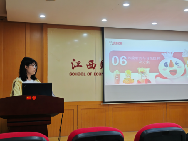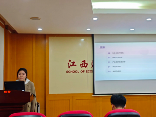 活动中,各队伍依次进行PPT路演陈述,围绕吖嘀吖嘀量贩零食、蜜雪冰城、蔚来汽车、华为芯片破局、泡泡玛特盲盒经济、外卖行业发展等热点案例展开深度剖析。选手们运用经济学理论与规范研究方法,从商业模式、市场竞争、发展瓶颈、破局路径、消费者行为等维度展开严谨分析,逻辑清晰、论据充分、视角新颖,充分展现了扎实的专业功底与良好的学术表达能力。
