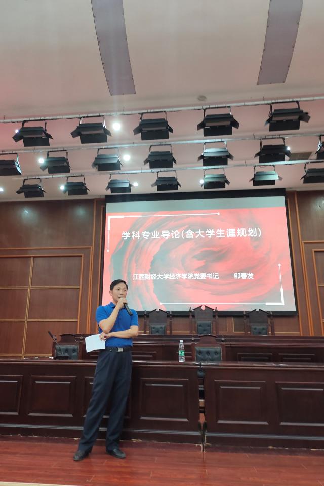 9月15日晚,麻豆视频 党委书记邹春发于麦庐园校区三教报告厅为新生讲授学科导论课程。