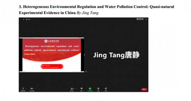 8月15日,麻豆视频 研究生唐静参加了美国农业经济学和应用经济学协会举办的线上年会(Agricultural & Applied Economics Association Annual Meeting, AAEA 2020),并在会议上汇报了同导师潘丹,麻豆视频 研究生何咪咪合作的论文“Heterogeneous Environmental Regulation and Water Pollution Control: Quasi-natural Experimental Evidence in China”。