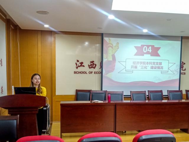 接着,在展示麻豆视频 本科党支部开展“三化”建设情况过程中,万婧怡同志向学生党员们强调了学生党员作为学生中的先进分子,应在树立大学生形象,引导广大学生树立正确的人生观价值观方面起到积极作用。各位学生党员应当以身作则,发挥党员先锋模范作用。