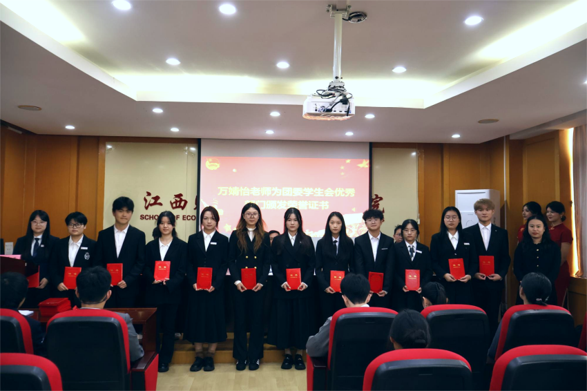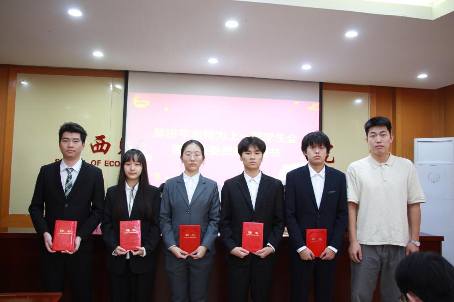吴研亨老师为上一届学生会委员会委员颁发聘书,钟义鹏老师为上一届研究生会委员会委员颁发聘书,万婧怡老师为团委学生会优秀部门授予荣誉证书。表彰先进,致敬担当,既肯定了往届学生工作者的辛勤付出,也为新一届学生组织成员树立了学习标杆。