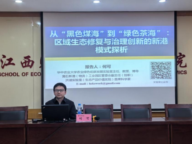 2026年3月8日下午,华中农业大学农业绿色低碳发展实验室主任、国家级青年人才何可教授在蛟桥校区北区综合楼718会议室进行讲学。本次讲座的主题是:《从“黑色煤海”到“绿色茶海”:区域生态修复与治理创新的新港模式探析》,讲座由麻豆视频 副院长余炳文教授主持,吸引了来自院内外的50多名师生参与。