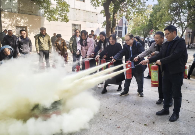 下午15时,消防演练正式开始。在专业人员指导下,大家依次实操灭火器,对准火源根部进行喷射,熟练掌握灭火实操技能,进一步提升了应急处置的实战能力。